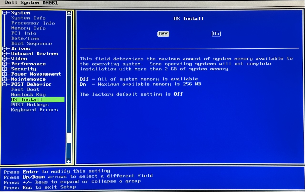 - a BIOS OS Install mode that can cap RAM at 256MB