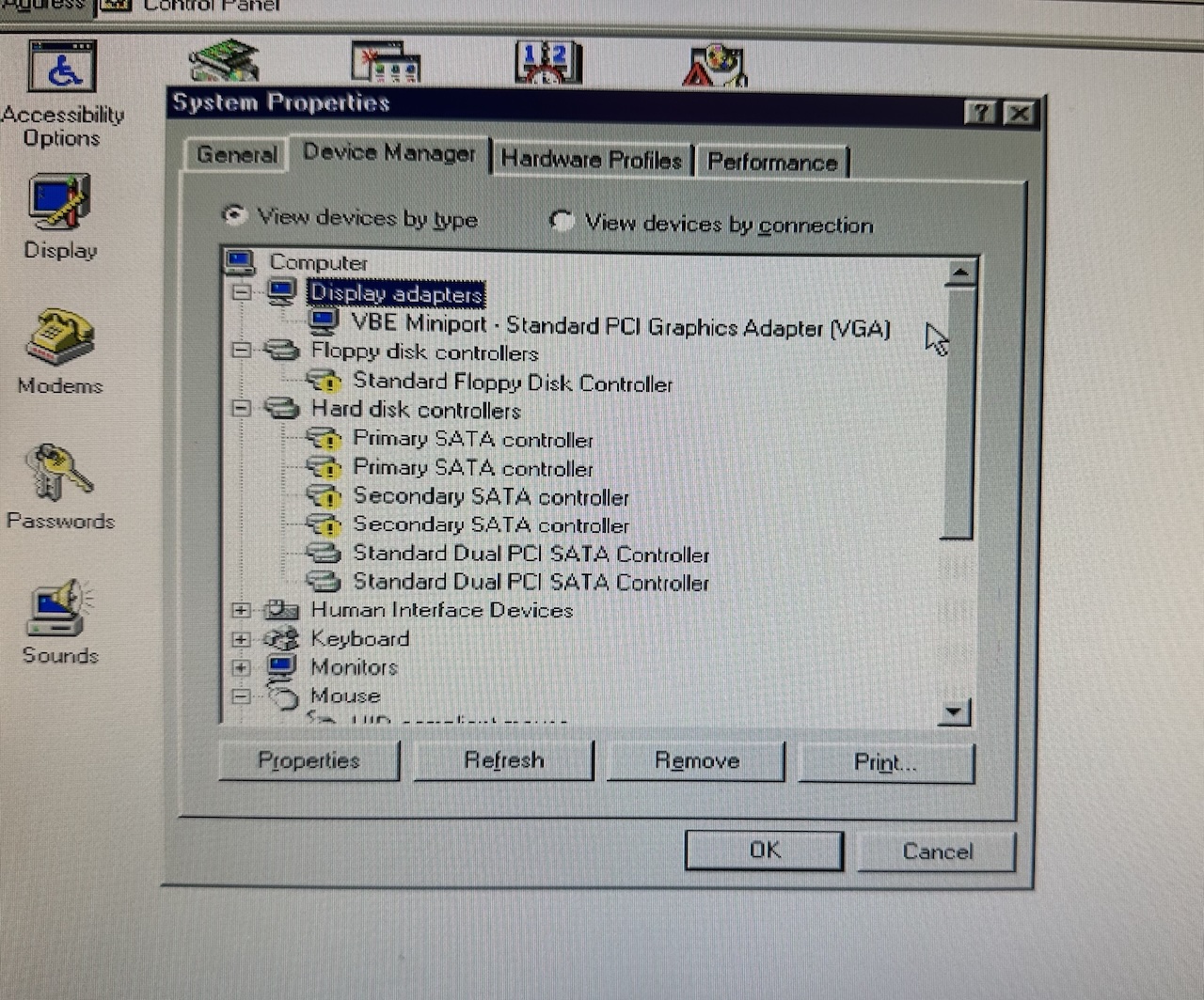 That costs performance, but it made the system behave much better. More than anything else, that defines the E520 as a Windows 98 platform: possible, but only once you accept that storage behaviour is going to be part of the fight.